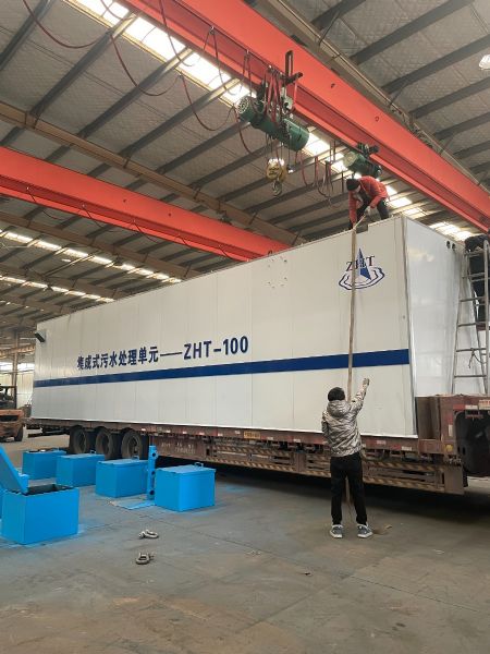 這是一臺集成式的MBR膜一體化污水處理設備,該設備放于地上,設備間與設備為一體,省去了客戶在單獨建設備間的煩惱,膜生物反應器是結合了膜分離技術和傳統的污泥法的一種,高xiao污水處理技術,由于膜的過濾
