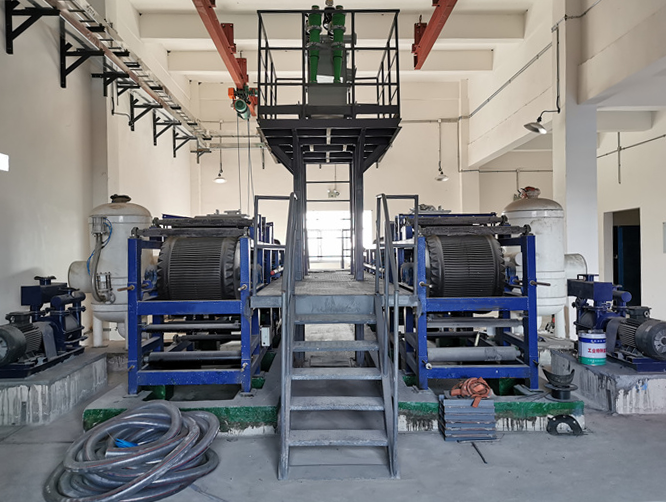 6、臥式強(qiáng)制變速攪拌,軸端采用橡膠及石墨盤根和水壓差三重密封,確保不漏漿。