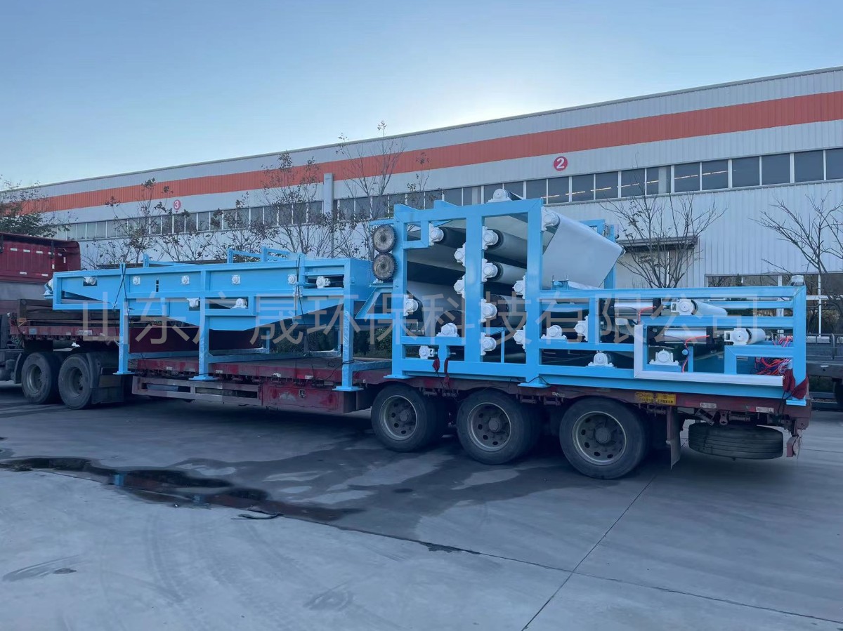 在重力的作用下自由水透過濾網背面而滲出分離,形成不流動狀態的泥漿,達到壓榨脫水區實施較大壓力條件,然后隨著網帶的移動而夾持在上下兩條網帶之間,經過具有可調張緊力的過濾帶及直徑逐漸遞減的轉輥和對壓輥,實施連續增加的緩慢的對輥擠壓力、剪切力作用。