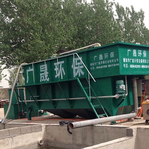 (2)氣浮機:經加藥反應后的污水進入氣浮的混合區,與釋放后的溶氣水混合接觸,使絮凝體粘附在細微氣泡上,然后進入氣浮區。絮凝體在氣浮力的作用下浮向水面形成浮渣,下 層的清水經集水器流至清水池后,一部分回流作溶氣使用,剩余清水通過溢流口流出。氣浮池水面上的浮渣積聚到一定厚度以后,由刮沫機刮入氣浮機污泥池后排出,氣浮底部的淤泥定時間用抽糞車吸出外運,或者是打開排污閥自流入污泥收集池,用污泥脫水機脫水處理,從而減少二次污染,安全可靠。